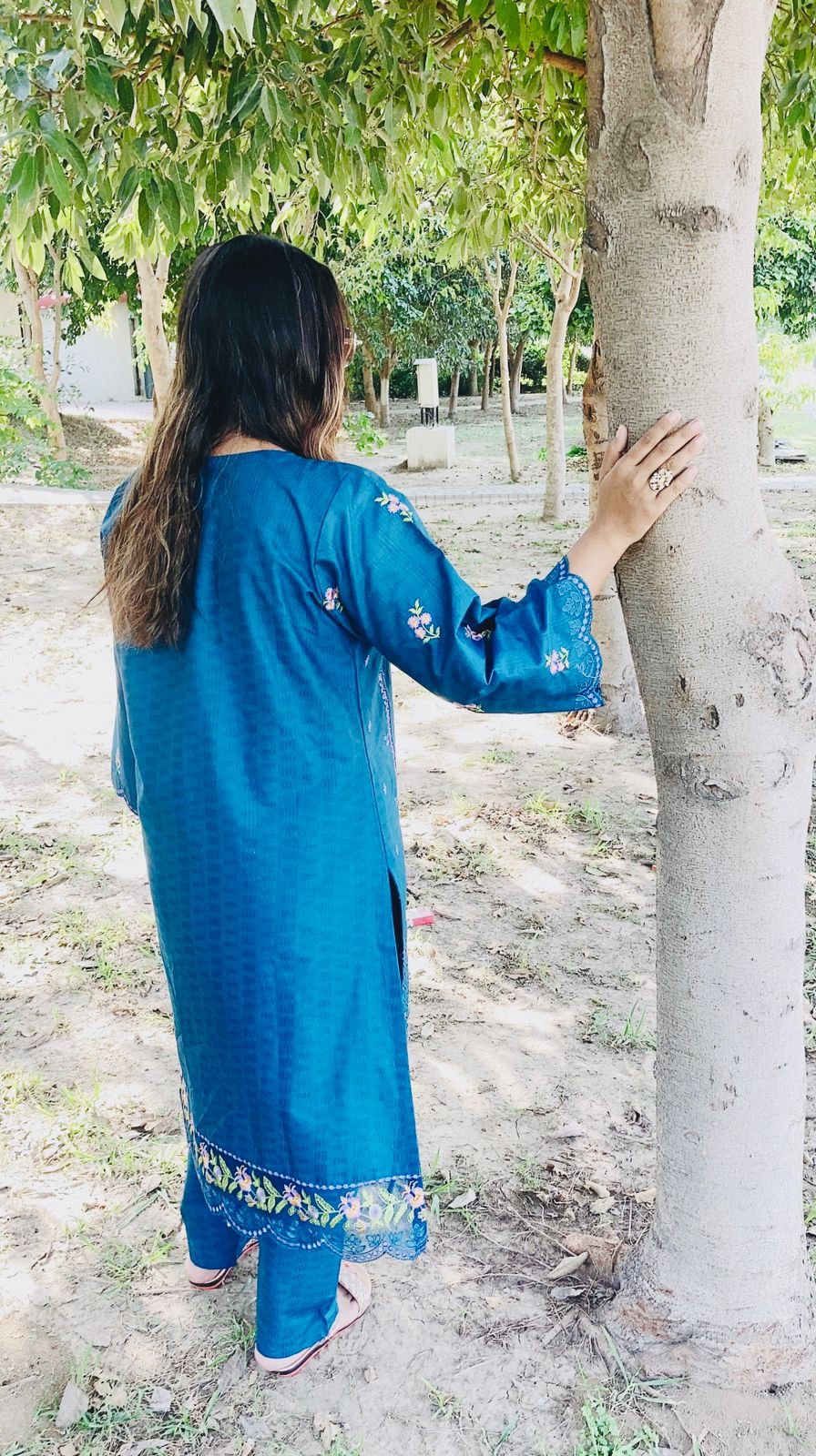 Dry Clean Only – Do not wash, bleach, or tumble dry. Handle with care to maintain the fabric’s softness and embroidery detailing.
